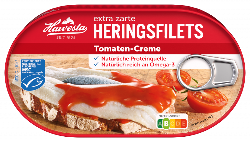 Die extra zarten Herings-Filets in fruchtiger Tomaten-Creme gehören zu den beliebtesten Klassikern von Hawesta. Sie machen sich pur auf knusprigem Toast genauso gut wie als Zutat in raffinierten Rezepten. Stöber doch am Besten gleich einmal in unserem Rezeptbereich und lass Dich inspirieren!